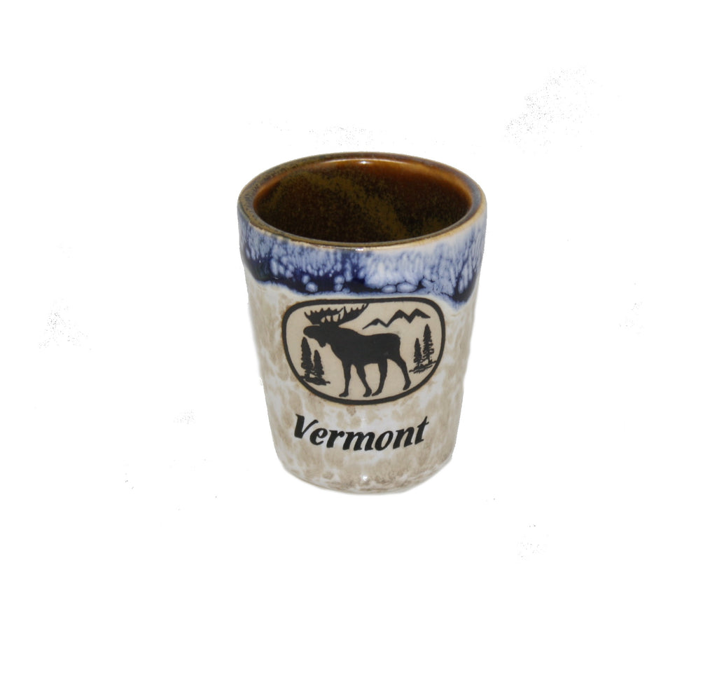 This classic ceramic shotglass has an embossed design that should never fade.  A 'dripped' glaze edge makes a great look.