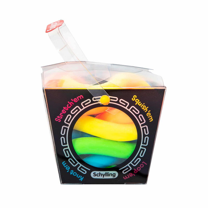 Noodlies fulfill the fun of playing with your food…without the mess! You can squeeze, stretch, knot, or mash these elastic noodles to your heart’s desire. Noodlies are brightly colored in 5 fluorescent tones and offer a unique sensory play experience that creates loads of endless fun. Toss them around with friends or squeeze a handful when you want to mellow out!