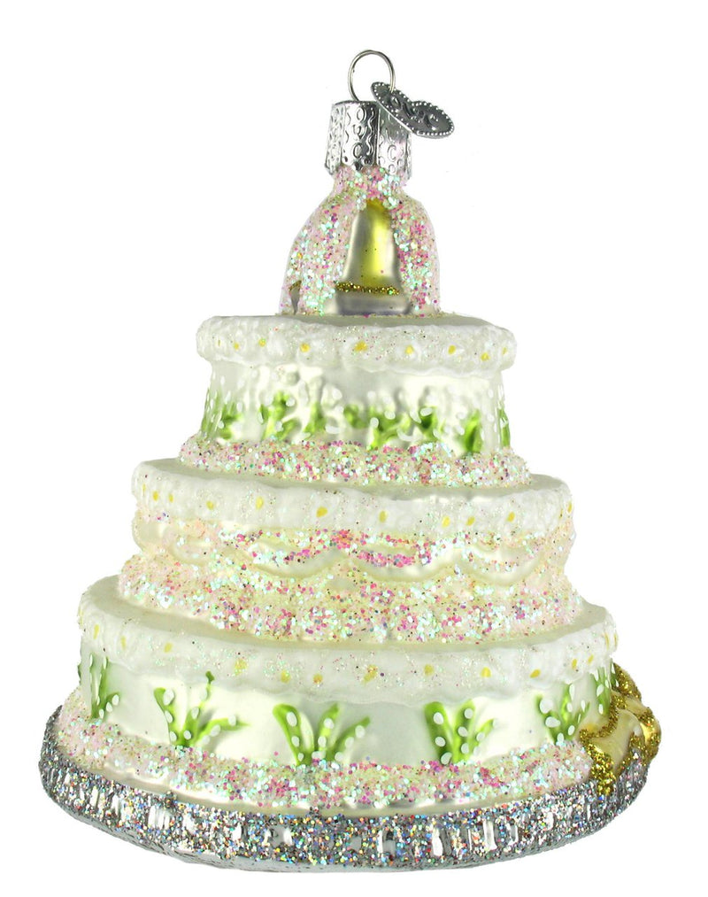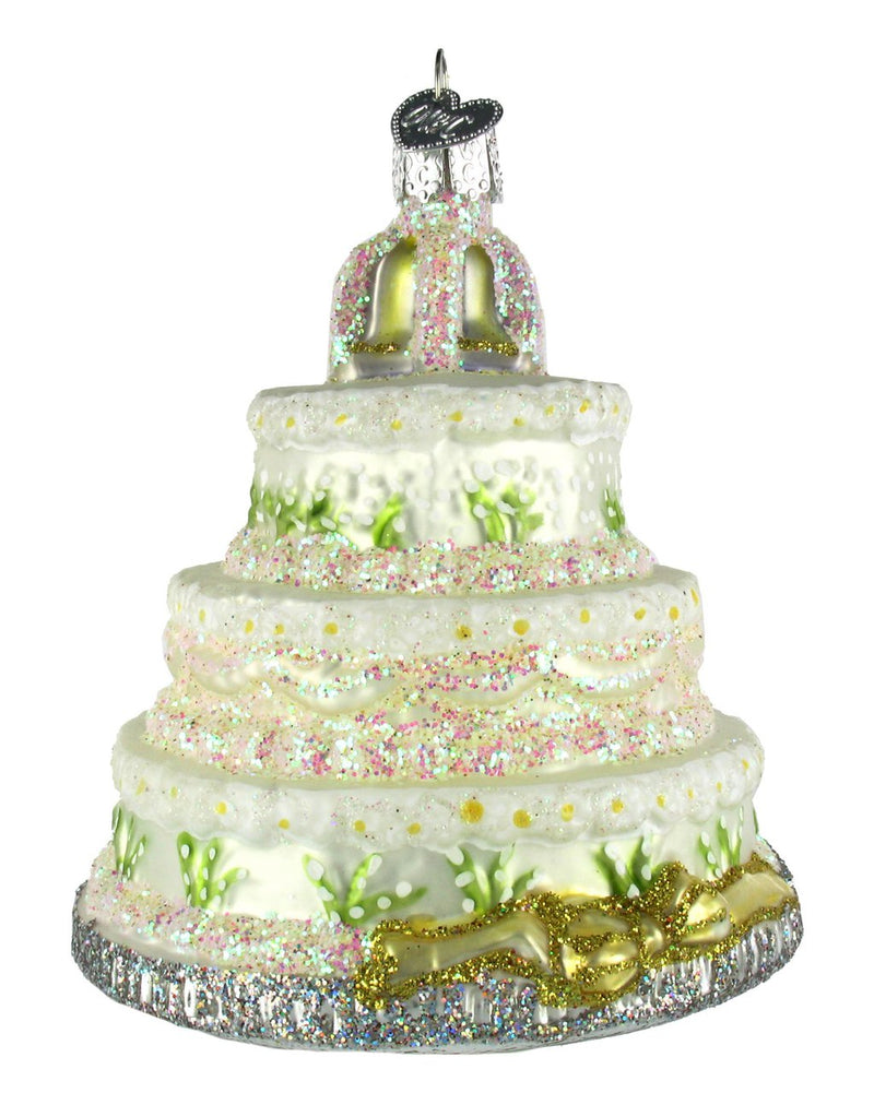 In the Middle Ages, guests brought sweet buns that were placed in a pile over which the bride and groom kissed. The taller the pile, the more prosperous the couple. This evolved into the tiered cake we know today. This Wedding Cake ornament serves as a keepsake of the special day or anniversary.