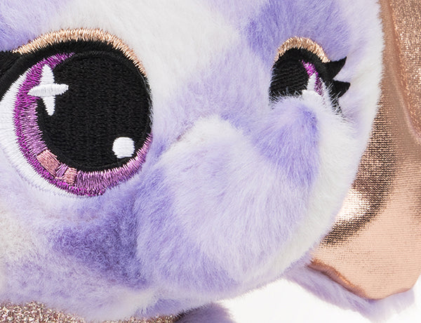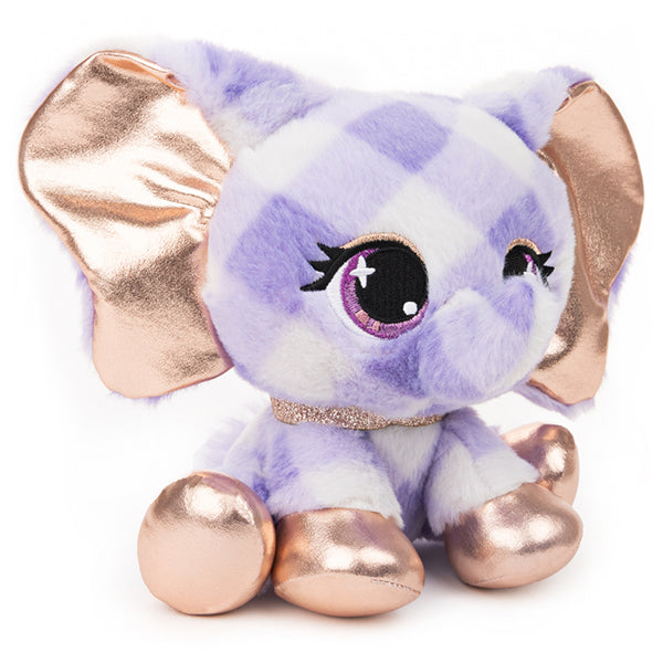 Pack up and go, go, go! Ella L’Phante always has her trunk packed for her next jet-setting adventure around the world in search of good times and new friends! The gorgeous geometric patterns of her fur help her stand out in a crowded airport while her sparkling amethyst eyes stay wide-open so she never misses a thing from the window seat. With her shining rose-gold ears, hooves, and matching glitter collar, Ella's always ready to get right to adventuring the second her fashionable feet hit the ground.