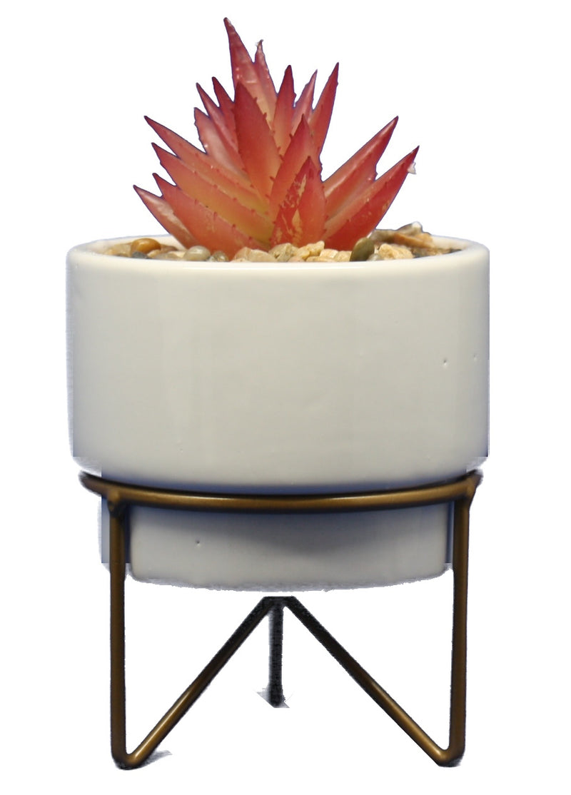 Add a touch of greenery to your home with this faux potted succulent on a metal stand! Perfect for adding a natural element to any room, without the hassle of caring for a real plant