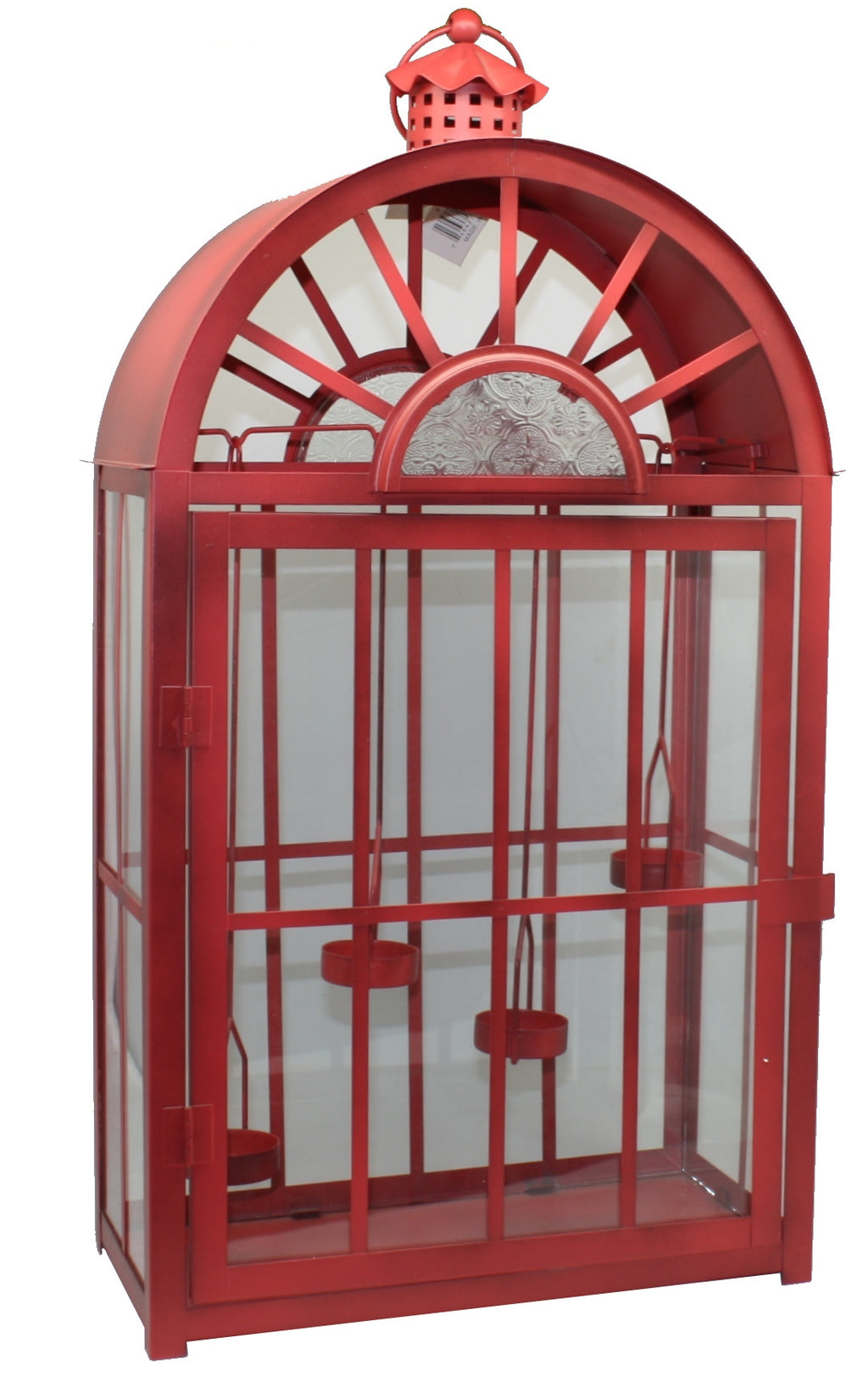 Illuminate your space with charm using our Elegant Metal Tea Light Holder, a stunning piece that adds a cozy ambiance wherever it's placed. Standing at 22.5 inches tall, this decorative holder features glass panels on all four sides, allowing soft tea light glows to radiate beautifully in any setting. The enchanting half-circle accent on the front and back enhances its appeal while the vented top not only looks lovely but also ensures proper ventilation for your candles.