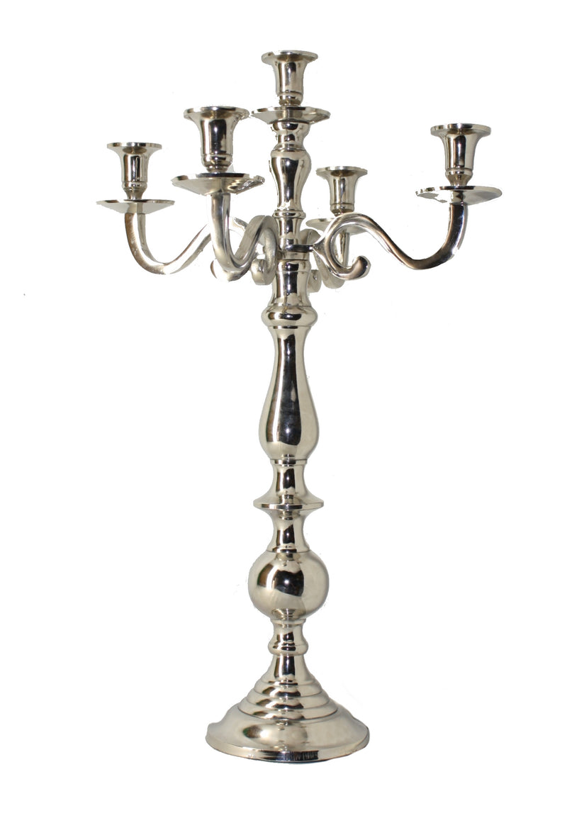 Illuminate your space with elegance! This 24-inch tall candelabra, crafted from nickel and aluminum, adds a touch of sophistication to any room. Perfect for dining table centerpieces or mood lighting!
