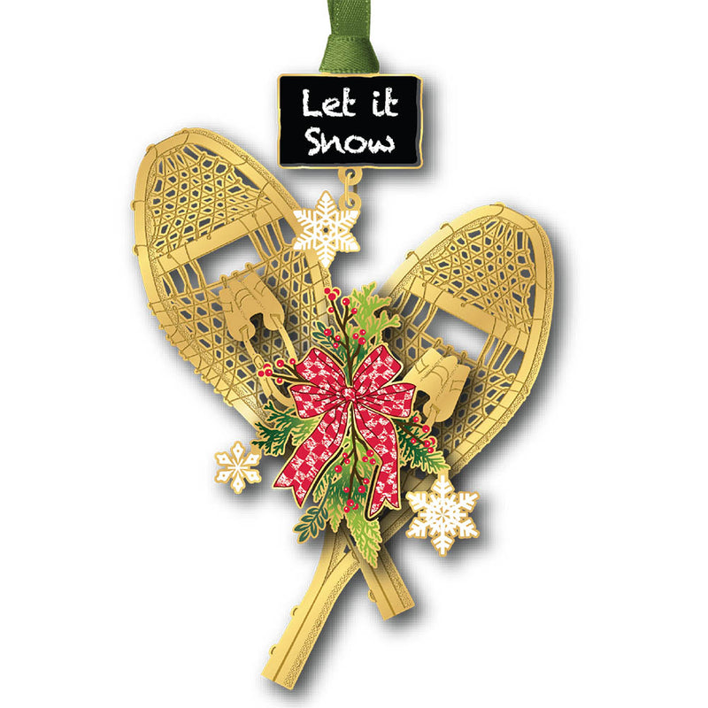 You will be saying, “Let it Snow!” when you see these gorgeous snowshoes. The 24k gold with bits of color make this Snowshoes ornament a great piece for any holiday decorations