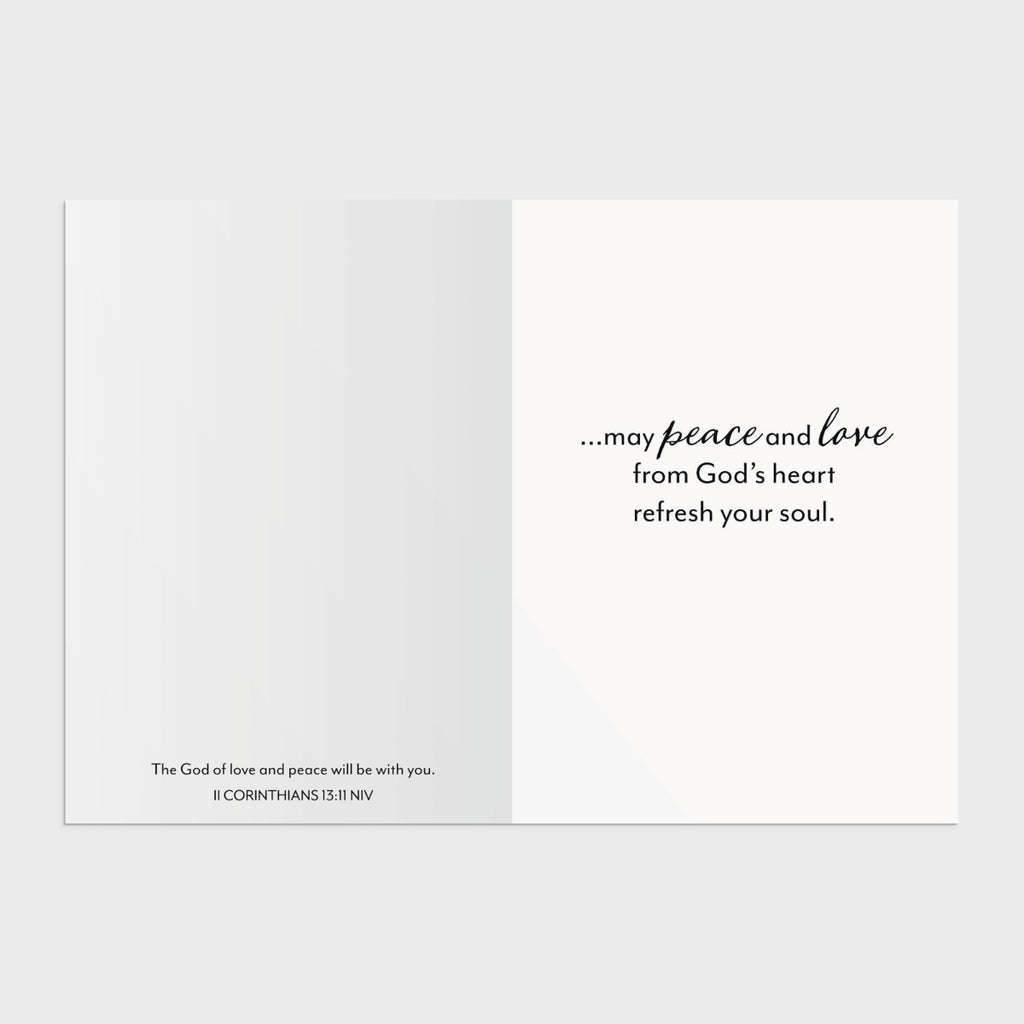 Inside: may peace and love from God’s heart refresh your soul.
