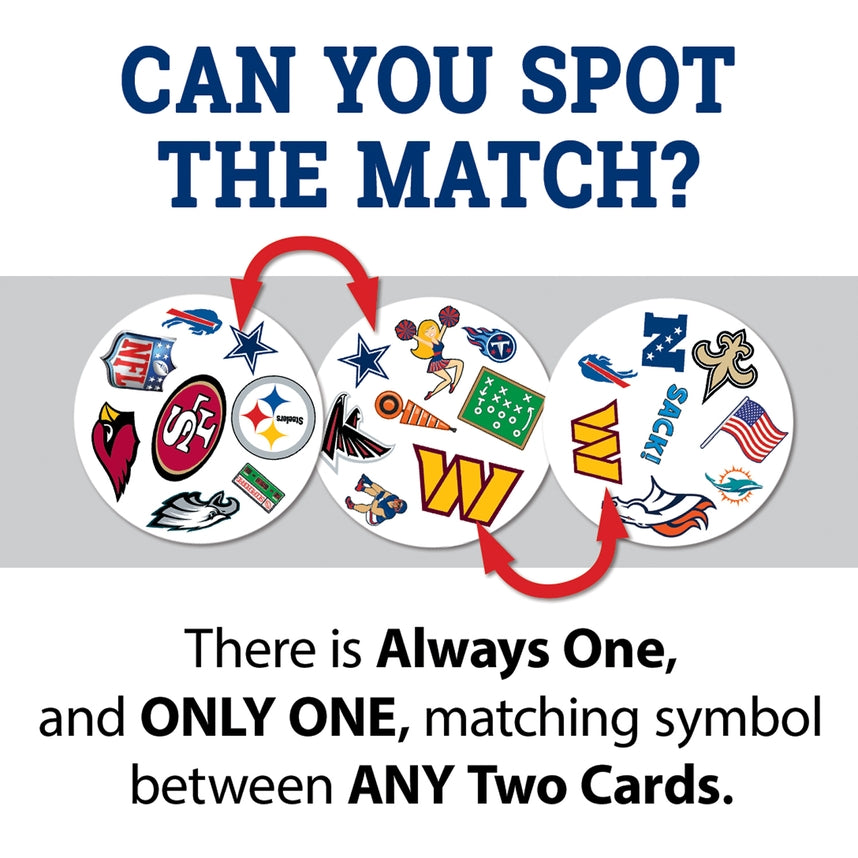 - Features 55 unique cards with NFL-themed symbols for fast-paced matching fun