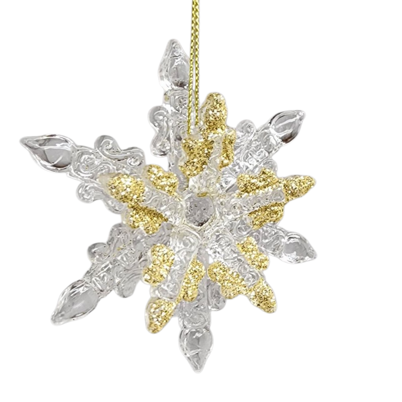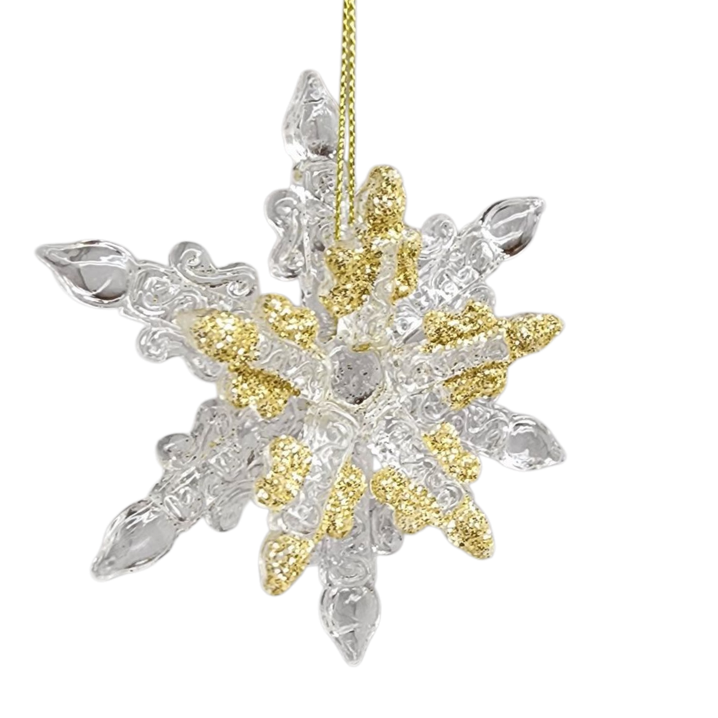 Handcrafted from real spun glass, the shimmering gold accents combined with the textured clear glass create a stunning play of light that will brighten any holiday setting. Whether you’re decorating your home or gifting someone special, this elegant and timeless snowflake ornament adds a touch of winter wonder and luxury to your celebrations.