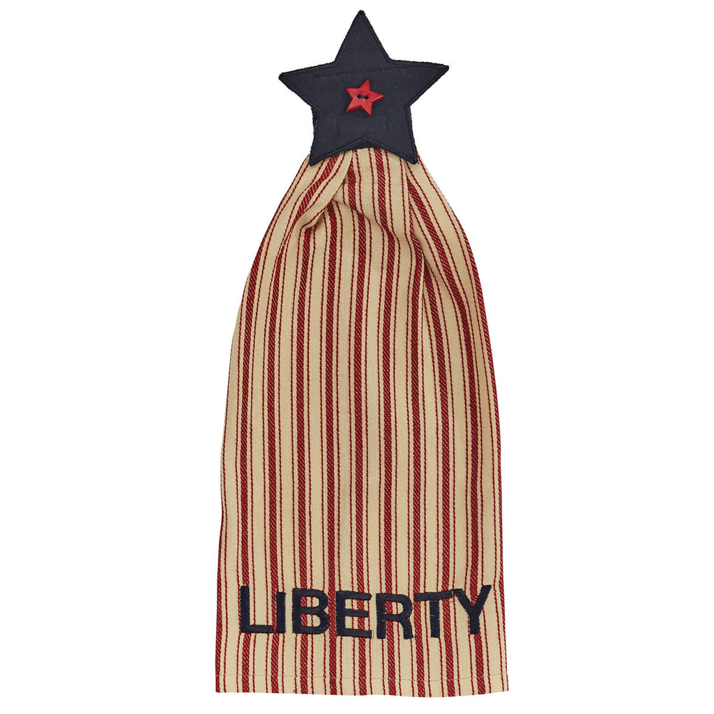 Enhance your kitchen or dining area for patriotic celebrations with the charming Star Spangled Liberty Hand Towel! This festive towel features a whimsical flap topped with a star and a velcro fastener, allowing for easy hanging from a drawer or oven handle while adding a decorative touch to your space. Measuring approximately 17.75 inches high and 7.25 inches wide, this towel is both functional and stylish, perfect for any Fourth of July or summer gathering!
