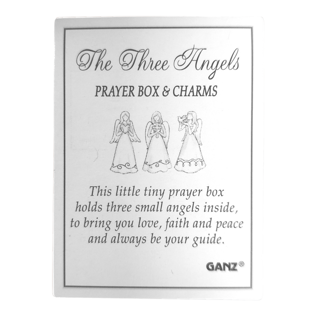 The Three Angels Prayer Box Charm is a beautifully crafted keepsake designed to offer comfort and guidance. Measuring 5/8 inches high, this intricately detailed prayer box contains three small angel charms, each symbolizing love, faith, and peace. Accompanied by a sentiment card, it serves as a constant reminder of protection and spiritual support. Perfect as a thoughtful gift or personal token, this charm box brings a sense of serenity and hope to those who carry it.