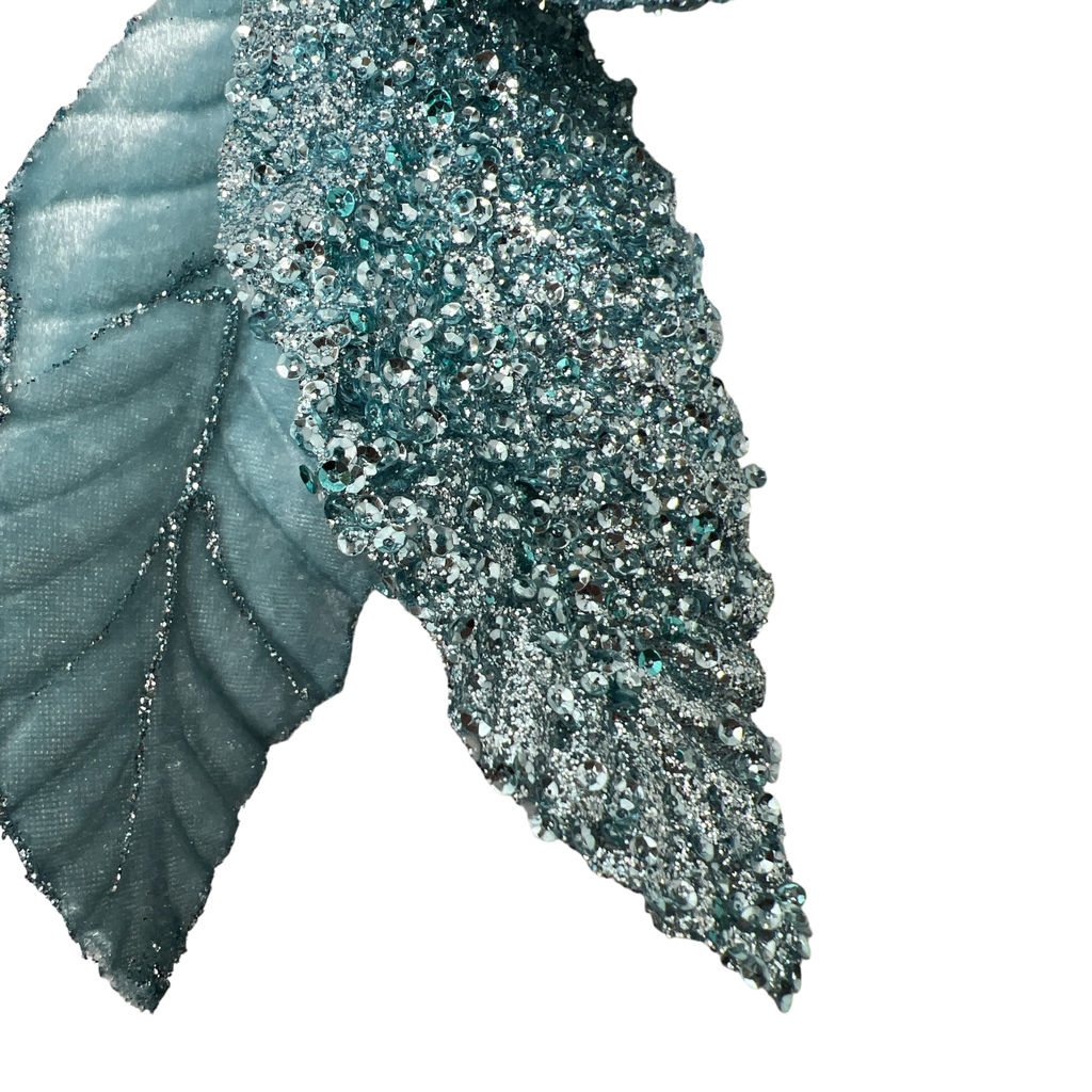 - Glitter-poinsettia stem in a stunning turquoise hue