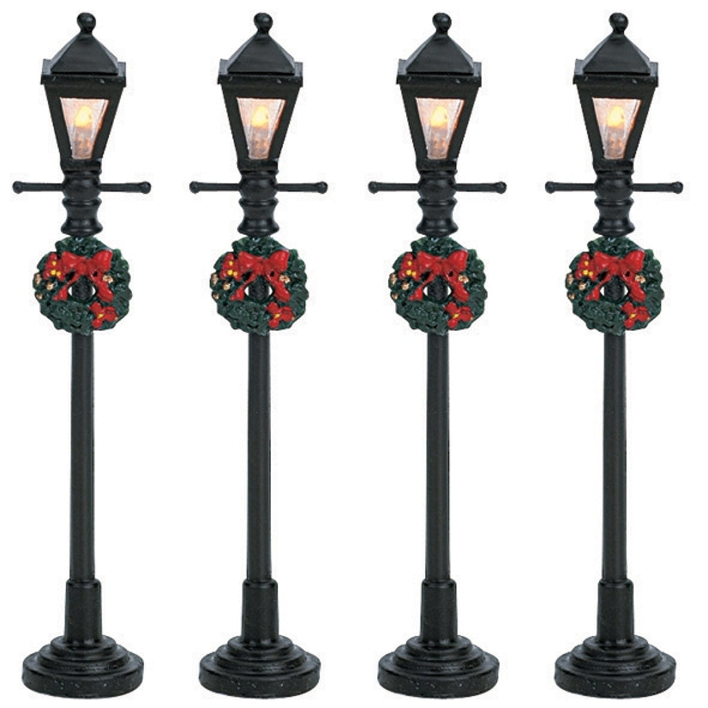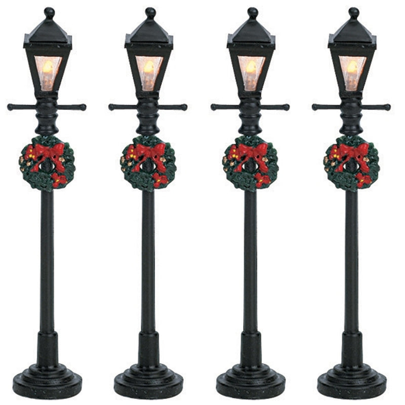 Illuminate your holiday village with the enchanting Village Gas Lantern Street Lamp Set from Lemax! This delightful set includes four authentically designed gas street lamps that will add a charming touch to your festive scenes. Each lantern is beautifully detailed, featuring a warm glow from a single bulb that creates a cozy atmosphere, perfect for guiding your miniature villagers through their winter wonderland.