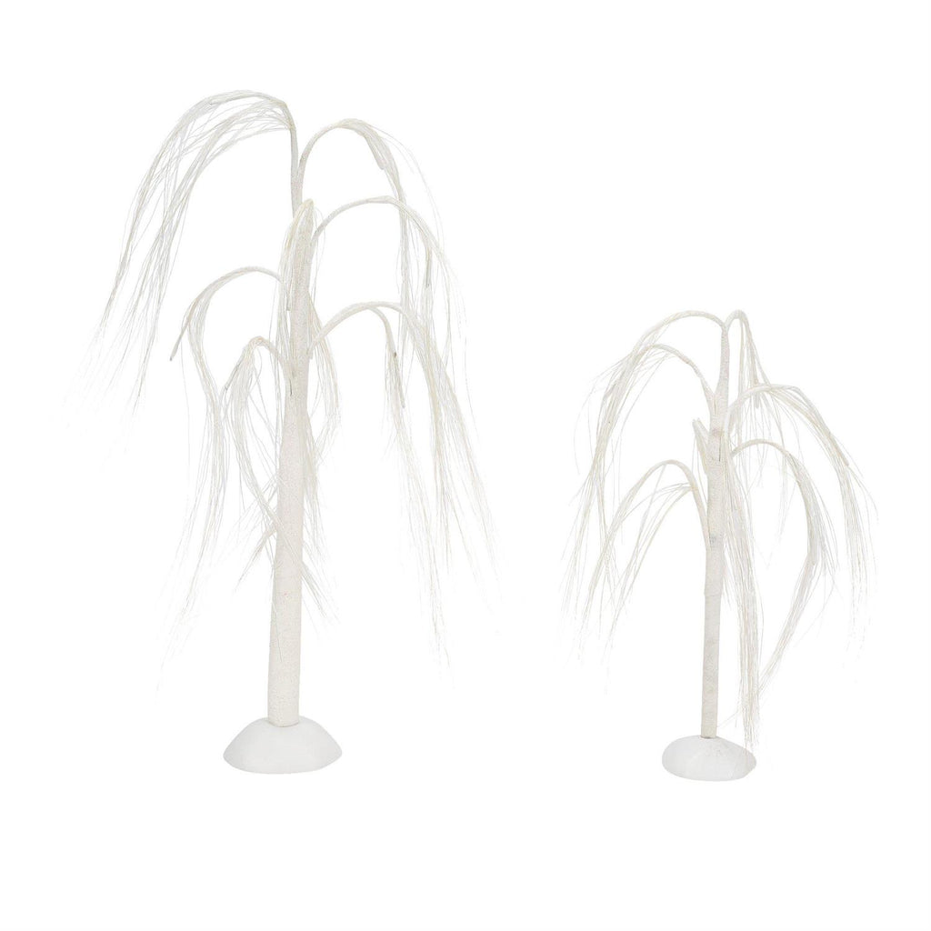 Enhance your holiday village display with the charming Weeping Willows - Set of 2 from Department 56. These enchanting trees bring a touch of whimsy and tranquility to your festive scene, capturing the delicate beauty of nature. The set includes two distinct sizes, perfect for adding depth and interest to your village layout. Each tree stands at 9 inches and 6 inches tall respectively, crafted from a combination of materials that include paper, iron, sisal, glitter, and polypropylene, coated with plastic for durability and longevity.