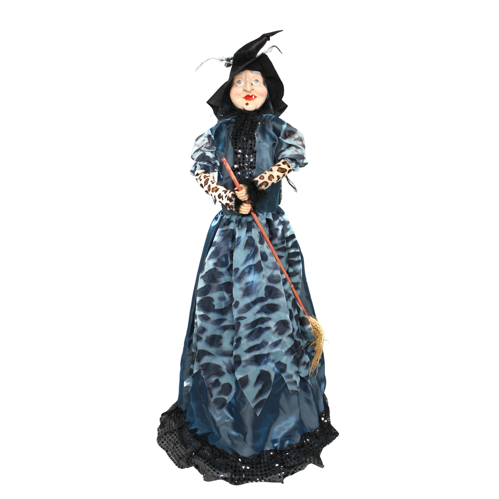 Transform your Halloween decor with the enchanting Light Up Cackling Witch! Standing at an impressive 38 inches tall and 21 inches wide and deep, this whimsical witch is perfect for adding a touch of spooky charm to your Halloween festivities. Dressed in a stunning blue and black gown adorned with shimmering accents, she exudes a playful, mischievous spirit that is sure to delight both children and adults alike.