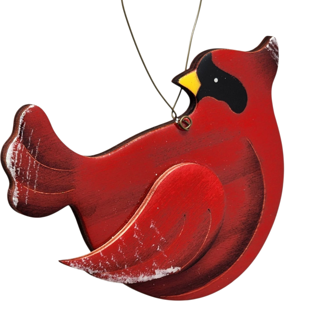 Wooden Cardinal Ornament - In flight Looking Back Left