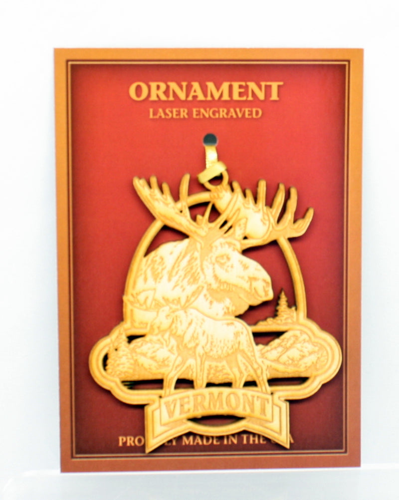 Wooden Laser Ornament - Vermont Moose